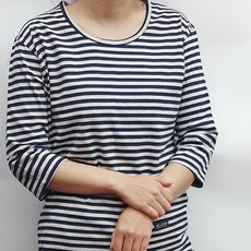 면100% 아줌마 스트라이프 순면 미시 엄마 나시 빅사이즈 요양원 순면 7부 티셔츠