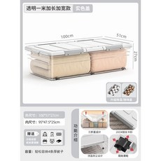침대밑수납 바퀴달린 의류보관 상자 정리함 서랍형, L100 W51 H16 투명색상