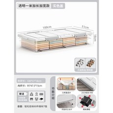 침대밑수납 바퀴달린 의류보관 상자 정리함 서랍형, L100 W51 H13.8 투명색상