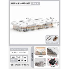 침대밑수납 바퀴달린 의류보관 상자 정리함 서랍형, L100 W51 H18 투명색상