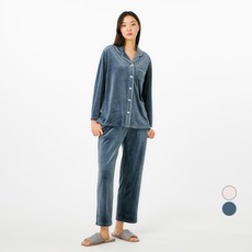 JAJU(자주) 여성용 라이트 밍크 플리스 브이넥 파자마 상하의 세트