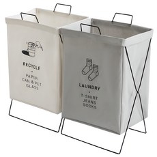 모노블 반전매력 접이식 분리수거함 2종 세트, 그레이 + 아이보리