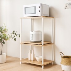 가구레시피 조립식 스마트 렌지대 스탠드선반, 오크 화이트, 3단