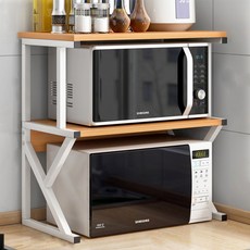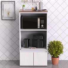Kurua 다용도 주방수납장 전자렌지 밥솥다이 에어프라이어 오븐선반, 2단, 우드화이트