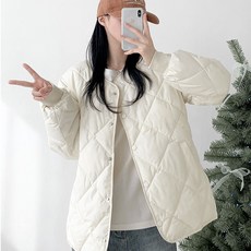 더아르엠 오버핏 경량 퀄팅 노카라 빅사이즈 누빔패딩점퍼