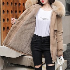 엘쏘 여성용 퍼 후드 벨벳 안감 다운 점퍼