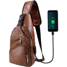 AMJ 크로스바디 슬링백 남성 여성 캐주얼 숄더 백팩 하이킹 여행용 가슴 데이팩 사첼, Khaki-leather
