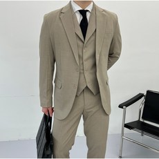 르누벨 3피스 스판 남자정장 수트 조끼 세트 봄/여름 면접 결혼식 하객룩 4Color