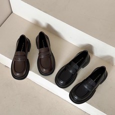 여성 심플 발편한 통굽 로퍼 신발 키높이 단화H136