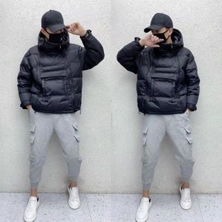 urkoteer 빅사이즈 남성 아노락 패딩 캐주얼 오버핏 두꺼운 남자 무지 후드 다운 상의 Anorak padding KB0795