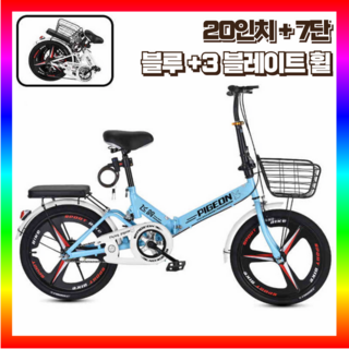 스노블룸 접이식 자전거 20인치 7단 3블레이드 휠 미니벨로 초경량 폴딩, 1개, 150cm, 블루