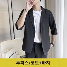 캐주얼 남성 정장세트 7부소매자켓 반팔 자켓 정장 팬츠 부소매