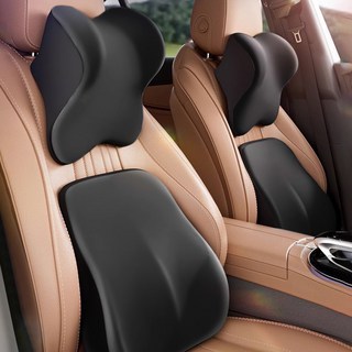 Tooliva 쾌적 차량용 메모리폼 목쿠션 허리쿠션 목쿠션 등받이쿠션 세트, 1개, 블랙