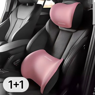 투데이리빙 1+1 차량용 메모리폼 목쿠션 + 등받이 쿠션 세트 자동차 통풍 목베개 등쿠션 여행용, R99934P, 1세트, 핑크