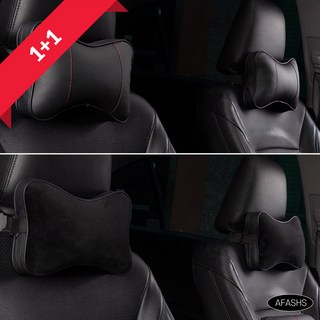 1+1 자동차 차량용 고급 목쿠션 베개 헤드 헤드레스트 스웨이드 받침, 블랙 2P