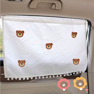 위싱 자동차 햇빛가리개 차량용 커튼, 1개, 곰돌이화이트