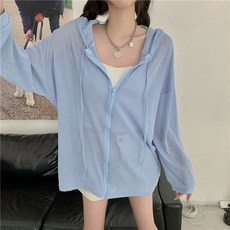 여성 여름 데일리 쿨 오버핏 루즈핏 자외선 햇빛 차단 비치 커버업 에어컨 시스루 얇은 시원한 아우터 롱 긴팔 후드 집업 시스루오버썸머후드집업