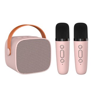 미니 블루투스 마이크 스피커 노래방 세트 캠핑 강의 가이드 무선 마이크 스피커 미니 노래방기기, 핑크, 마이크1개
