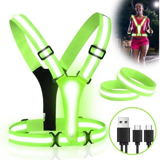 led안전조끼 야간도로 공사조끼 형광반사띠 안내조끼 아오채 LED 반사 조끼 러닝 기어 2PCS 암밴드 충전식 라이트 업 조정 높은 가시성 남성 여성 용, 2개