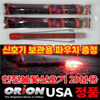 [가마모터스] 보관용 파우치 증정 안전불꽃신호기 미국 USA 오리온사 정품 20분용 자동차 필수품 2차 사고 예방 신호봉 경광봉 야간 고속도로, 1개