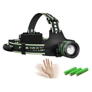 담스플러스 화이트레이저칩 4개 초강력 LED 충전식 줌 해루질 야간 작업등 센서 랜턴 헤드랜턴, 본체+18650충전지3개+C타입충전아답타, 1세트
