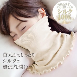 일본 가습마스크 실크 100% 수면 마스크 목 코 건조 방지 보습, 넥워머형(아이보리), 1개, 1개입