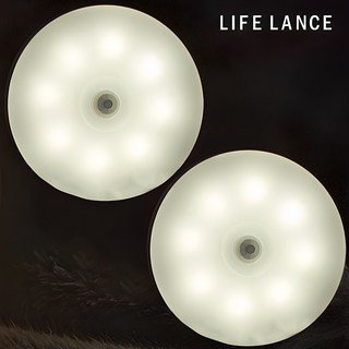 라이프란스 무선 LED 원형 무드 현관조명 자석 부착 동작감지 센서등, 백색, 2개