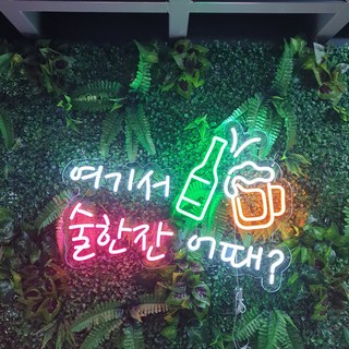 여기서 술한잔 어때 LED 네온 사인 650*470mm 디밍기 전원포함