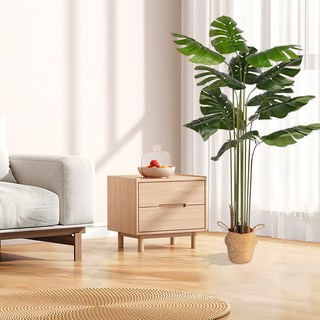 GAPINO 몬스테라 조화나무 조화 화분 인조나무 실내조경 인테리어 식물 대형 조화나무 장식 조화식물 라탄 화분바구니 세트, 녹색, 1개
