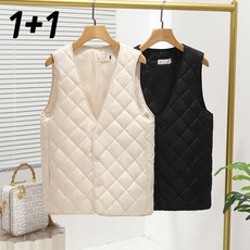 1+1 (베이지+블랙) 패딩조끼 빅사이즈 M-5XL옵션 데일리룩 브이넥 보온 따뜻한 경량패딩 베스트 조끼