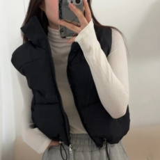 셀리나에스 하이넥 집업 숏 패딩 조끼