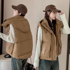 ANYOU 패딩조끼 루즈핏 상의 패딩면 조끼 가을 겨울 여성용 면조끼 캐주얼