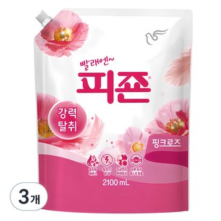 피죤 강력탈취 레귤러 섬유유연제 핑크로즈 리필, 2.1L, 3개