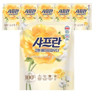 샤프란 섬유유연제 코튼 베이비파우더 리필, 2.1L, 6개
