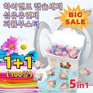 1+1 하이엔드 캡슐세제 5in1 섬유유연제 퍼퓸부스터 후레쉬 플로럴 프루티 향 캡슐세탁세제, 2개, 50개입