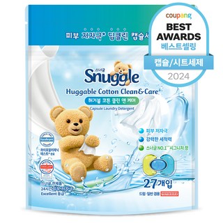 스너글 캡슐 세탁세제 허거블 코튼 클린앤 케어, 27개입, 1개