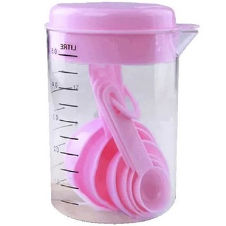 Unionvicky 플라스틱 메저링 계량스푼 컵 포함 7종 세트 핑크, 1개