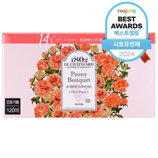 르샤트라1802 건조기용 드라이 시트 섬유유연제 피오니부케 본품, 120개입, 1개