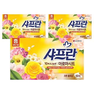 샤프란 아로마 시트 섬유유연제 코튼블러섬향 본품, 50개입, 3개
