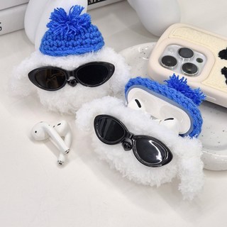 영스피플 선글라스 뽀글이 강아지 에어팟 케이스 1 2 3 프로2 털 모자 인형 귀여운 동물 보호 커버, 에어팟3, 1개
