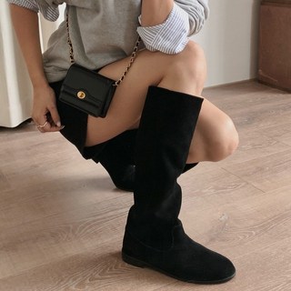 여자 내추럴핏 스웨이드 천연 소가죽 롱부츠