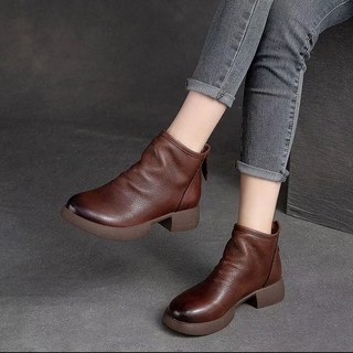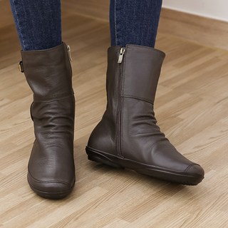 중년여성 캐주얼 가죽 쿠션 집업 발편안 로힐 엄마 앵클 부츠 빈티지 워커 부츠