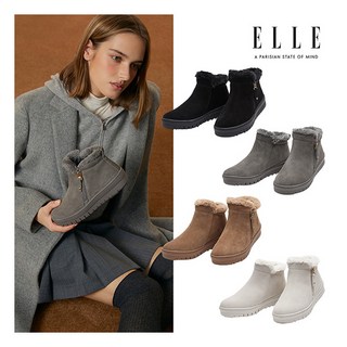 안감 기모 퍼 스웨이드 시보리 콤비 통굽 방한 앵클부츠