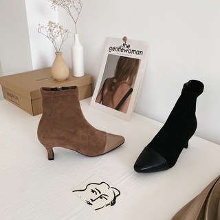 미들힐 투톤 스판 에코 스웨이드 삭스부츠 앵클부츠