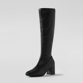 [오늘출발] 메르나뛰 베이직 심플 라운드 청키힐 통굽 라벨 뒤지퍼 가죽 롱부츠 MEB2