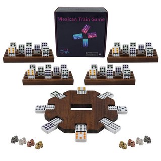 WahART 에이알티oly 나무 허브가 있는 멕시코 기차 도미노 세트 91개의 타일 보드 게임 금속 마커 컬러 도트 더블 12개 가족 게임의 밤을 위한 목재 랙 4개 포함 번트, WahART 에이알티oly 나무 허브가 있는 멕시코 기