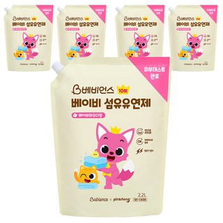 베비언스 핑크퐁 베이비 섬유유연제 베이비파우더향 리필, 2.2L, 5개