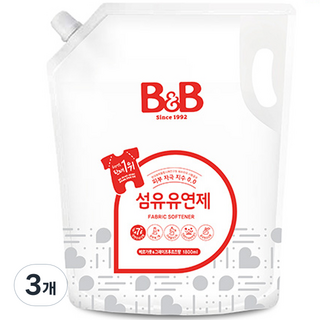 비앤비 비자극 유아 섬유유연제 시그니처 알러젠프리 자스민앤로즈향 리필형, 3개, 1.5L