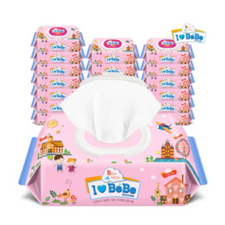 아이러브베베 핑크 아기물티슈 캡형 43평량, 43g, 100매, 20개