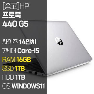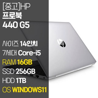 HP ProBook 440 G5 인텔 7세대 Core-i5 RAM 16GB M.2 SSD + HDD 1TB 윈도우 11설치 사무용 중고노트북, WIN11 Pro, 1256GB, 코어i5